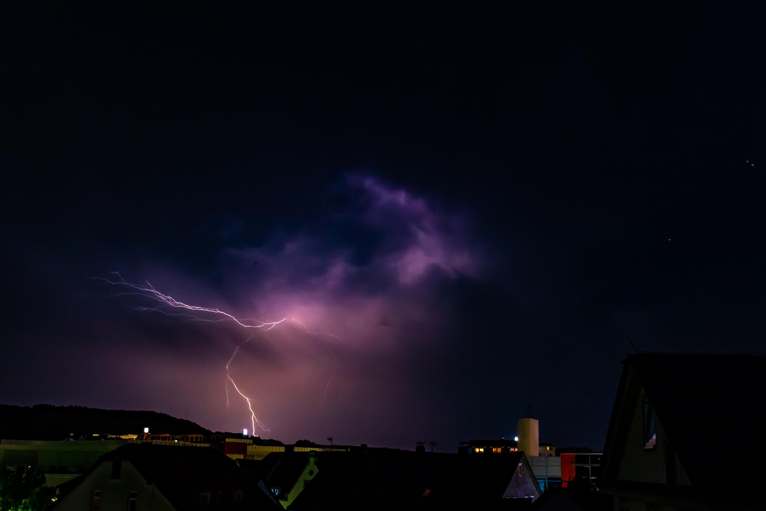 Das Gute war, dass es in Herborn selbst zu diesem Zeitpunkt noch nicht geregnet hat und ich von meinem Schlafzimmerfenster freien Blick auf das Geschehen hatte.